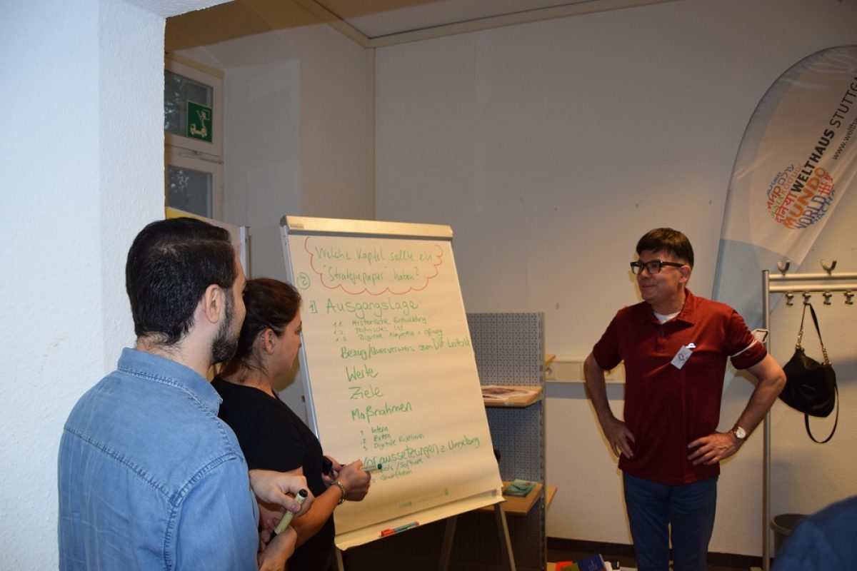 Im Rahmen des Projekts "Die Verantwortlichen #digital" - einer Intiative der Akademie für Ehrenamtlichkeit, der Robert Bosch Stiftung und des Ministeriums des Innern, für Bau und Heimat - haben wir als DTF die Gelegenheit, mit einem Berater an einer Digitalisierungs-Strategie für die kommenden Jahre zu arbeiten. Am 28. Juni 2021 fand hier im Welthaus Stuttgart das Kickoff mit Vertreter*innen des DTF-Teams, des Vorstands und einigen Ehrenamtlichen statt.